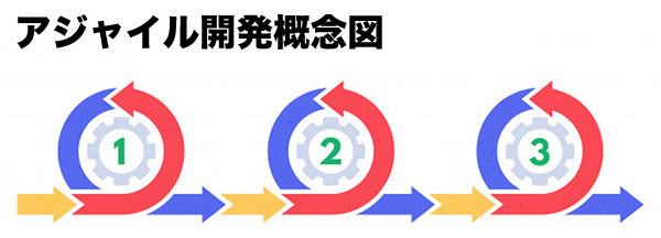 わたしたちは開発手法として主にアジャイル開発を採用しています。 アジャイル開発とはソフトウェア開発を小さなプロセスに分け 「計画」「開発」「テスト」「リリース」を短いサイクルで繰り返す「反復増加型」の開発プロセスをとります。「開発途中に仕様や設計の変更があることは当たり前」という前提に立ち、初期段階での計画に囚われず、途中で変更があっても臨機応変に対応できるというメリットがあります。これにより最初に決めた仕様には合っているけど完成したシステムは使えない等のよくある問題を回避します。